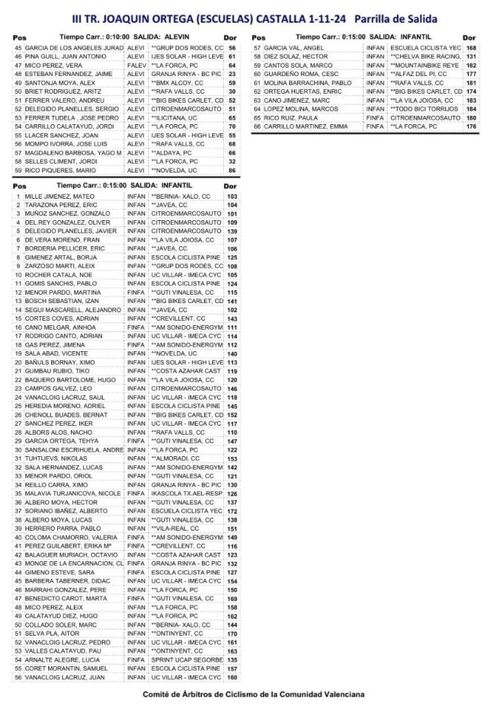 27 de octubre. L’Ènova. Clasificaciones