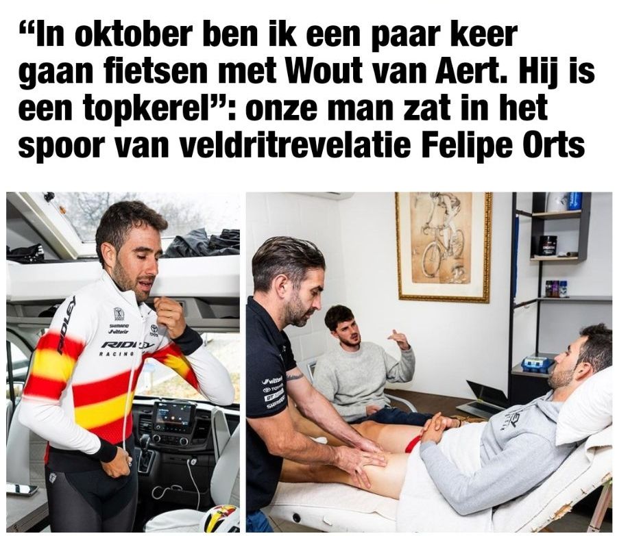 Felipe Orts es protagonistas en el prestigioso periódico flamenco Het Nieuwsblad en una entrevista en la que se puede leer cómo se desarrolla su vida a caballo entre España y Bélgica desde que ha fichado con el equipo Ridley Racing Team. «Normalmente, todos los viernes o sábados vuelo desde Alicante. Mi vida es muy diferente en un país y en otro. En España, tengo a mi novia y a mi perro. Pero cuando estoy en Bélgica estoy solo y concentrado en un único objetivo: el ciclocross. Mi novia casi nunca puede viajar conmigo, porque tiene su trabajo en España», insiste el vilero.