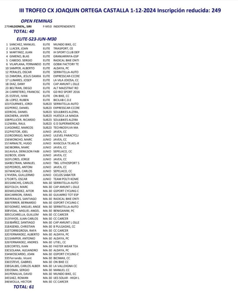 – 13:15 H.: Élite-Sub23, M30 y Junior (Hombres).