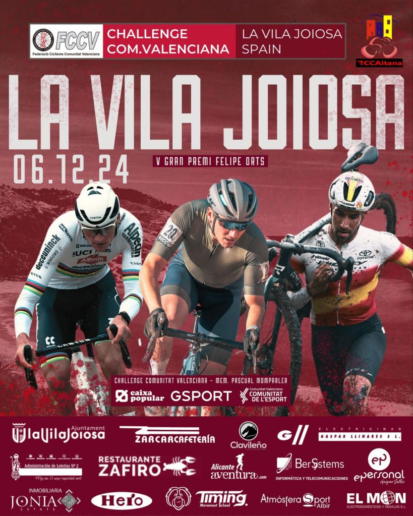 El viernes, día 6 de diciembre, se disputa en La Vila el V GP Felipe Orts, prueba puntuable para la Challenge de CX de la Comunidad Valenciana. El ciclista vilero, tercero el domingo en Dublín, en la segunda prueba de la Copa del Mundo, ha anunciado que estará en el Trofeo que lleva su nombre. Estará durante toda la mañana hablando con toda la gente y por supuesto entregando los trofeos que lleva su nombre antes de viajar a tierras italianas donde disputará la tercera prueba de la Copa del Mundo en Cabras (Cerdeña).