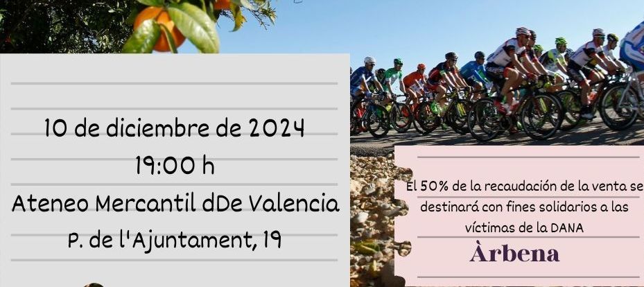Hoy martes, 10 de diciembre, a las 19:00 horas, se presentará en el Ateneo Mercantil de Valencia el libro 𝗛𝗶𝘀𝘁𝗼𝗿𝗶𝗮 𝗱𝗲 𝗹𝗮 𝗩𝗼𝗹𝘁𝗮 𝗖𝗶𝗰𝗹𝗶𝘀𝘁𝗮 𝗮 𝗹𝗮 𝗖𝗼𝗺𝘂𝗻𝗶𝘁𝗮𝘁 𝗩𝗮𝗹𝗲𝗻𝗰𝗶𝗮𝗻𝗮 (𝟭𝟵𝟮𝟵-𝟮𝟬𝟮𝟰), del periodista Paco Lloret. Una obra imprescindible que repasa la trayectoria de esta emblemática competición ciclista con motivo de su 75.ª edición. El 50 por ciento de la venta se destinará con fines solidarios a las víctimas de la DANA (Àrbena).
