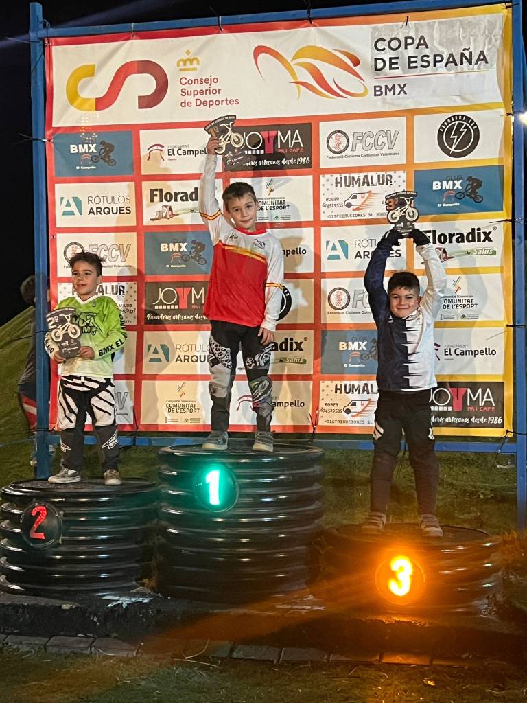 Xavi Cherro (BMX Alcoy) y Mar Martín (Terrassa) se impusieron el sábado en Alevines; Sergio Morillo (F. Catalana) y Sonia Recuero (BMX Olímpico), en Cadetes; Sergio Sánchez (Talavera), con Marc Peralta (Ralph’s Bikes) y Alejandro Fuentes (BMX San Vicente), segundo y tercero, en 17 a 29; Fran Calvo (BMX El Campello), en Júnior; Álvaro José Díaz (Bike Park Costa Blanca), en Élite y Sub 23; Fran Calvo (BMX El Campello), Hombres 13 a 16/OPEN 17; Raúl Saorín (BMX El Campello), con Germán Llinares (BMX Alcoy) y Kergosien Yann-Yves (BMX El Campello), segundo y tercero, en Hombres 40 a 49; Matías José López (BMX El Álamo), con Javi Pastor (Ralph’s Bikes) y Rafael Aliaga (Ralph’s Bikes), segundo y tercero, en Hombres 50 y Más; Erik González (BMX School), con Aitor Nicolás (BMX San Vicente) y Vicente García (BMX Alcoy), segundo y tercero, y Leyre García (Show Time), con Chiara Muñoz (Bike Park Costa Blanca), segunda, en Infantiles; Kevin Sánchez (BMX San Vicente), en M30; Leandro Cabral (El Álamo), con Alberto Peralta (Ralph’s Bikes), tercero, en M40; Sofía Belén Bull (Bike Park Costa Blanca), con Belén Calvo (BMX El Campello), segunda, en Mujeres 13 a 16; Jorge Mayor (BMX San Vicente) y Julia Smith (BMX El Campello), en Principiantes: Darío Espeso (BMX School), con Axel Pérez (BMX El Campello), tercero, en Promesas 5 y 6; y Mateo Javier Nieto (Yellow), con Alan Asensio (BMX San Vicente), segundo, y, Maylen Sigcha (Pirineos), en Promesas 7 y 8.