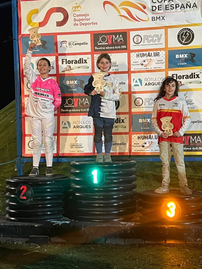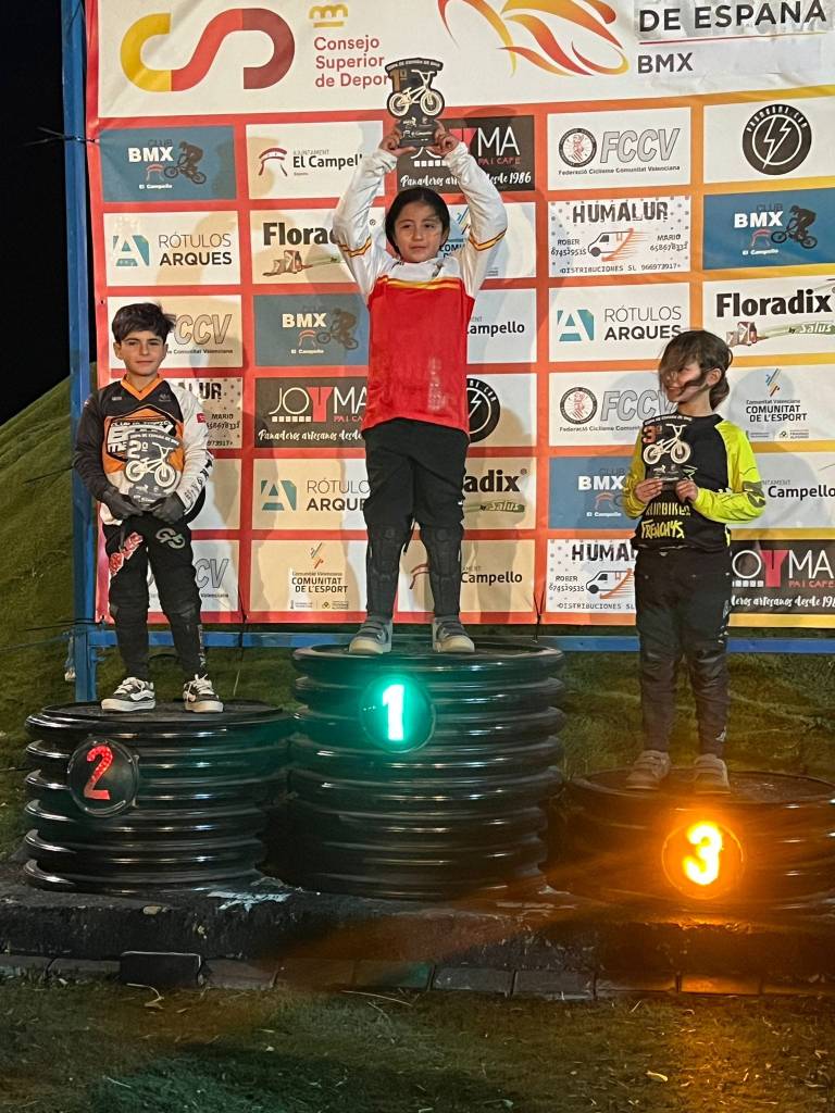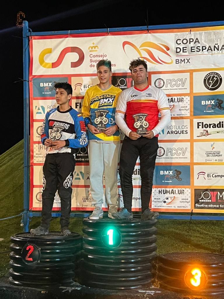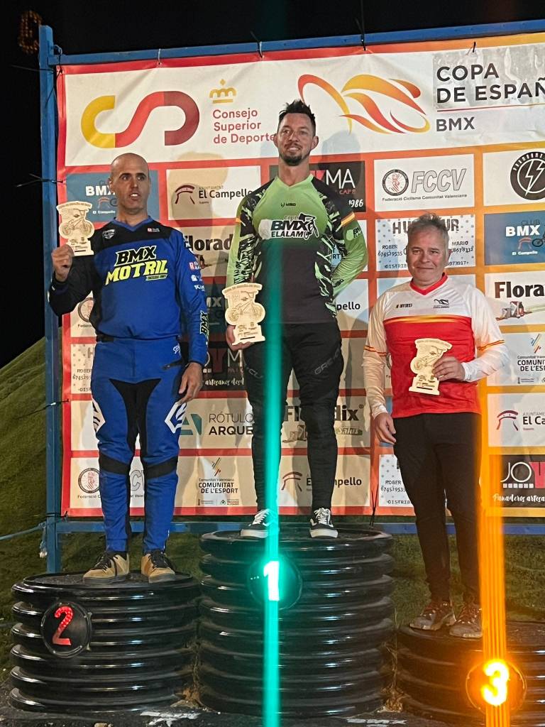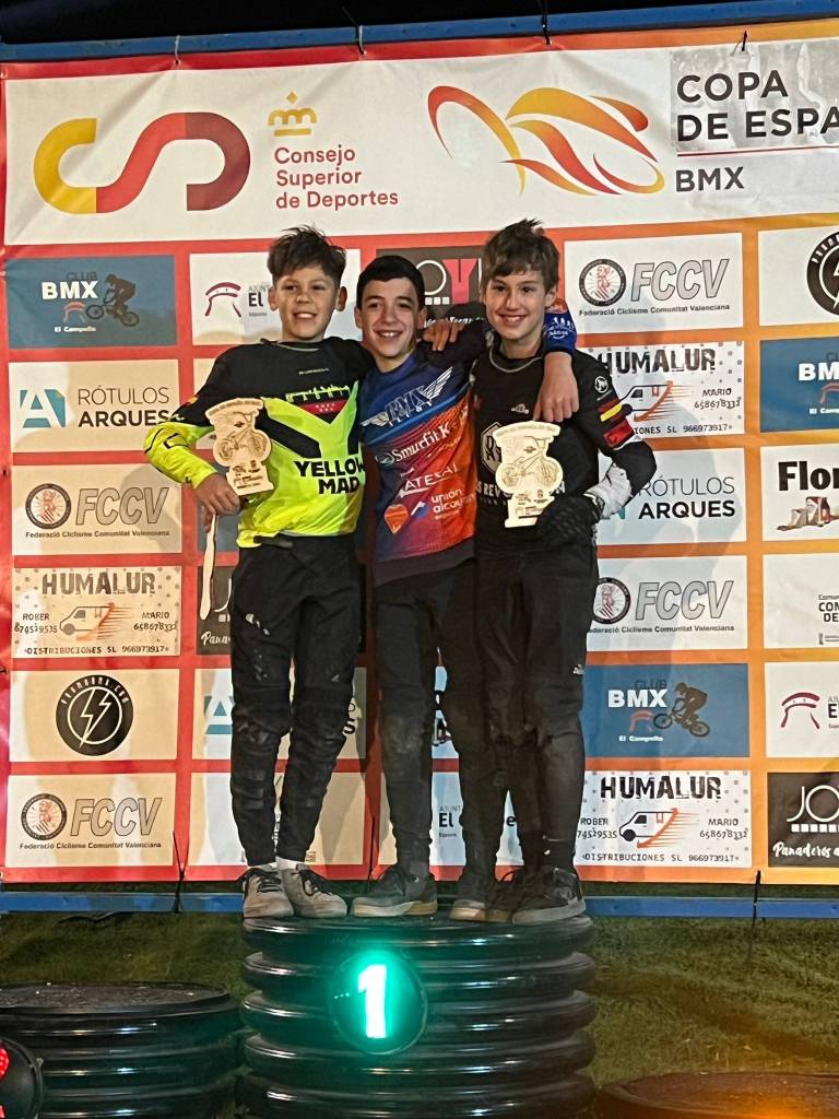 Xavi Cherro (BMX Alcoy), con Hugo Muñoz (Bike Park Costa Blanca), tercero, y Mar Martín (Terrassa) han ganado hoy domingo en Alevines; Sergio Morillo (F. Catalana) y Sonia Recuero (BMX Olímpico), en Cadetes; Carlos Ordóñez (Bike Park Costa Blanca), en Élite y Sub 23; Fran Calvo (BMX El Campello), Hombres 13 a 16/OPEN 17; Raúl Saorín (BMX El Campello), con Enrique Santonja (BMX Alcoy) y Rodrigo Martín Ridao (BMX San Vicente), segundo y tercero, en Hombres 40 a 49; Matías José López (BMX El Álamo), con Javi Pastor (Ralph’s Bikes), segundo, en Hombres 50 y Más; Carlos Moreno (Olímpico), con Javier Delgado (BMX San Vicente) y Vicente García (BMX Alcoy), segundo y tercero, y María Pérez (Motril), con Chiara Muñoz (Bike Park Costa Blanca), tercera, en Infantiles; Sergio Sánchez (Talavera), en M30; Marc Peralta (Ralph’s Bikes), en M40; Sofía Belén Bull (Bike Park Costa Blanca), con Belén Calvo (BMX El Campello), segunda, en Mujeres 13 a 16; Thiago Villegas (Yellow), con Adrián Reyes (BMX Alcoy), tercero, y Leyre Cabral (Álamo), con Julia Smith (BMX El Campello), segunda, en Principiantes: Alejo Rodríguez (Riders), con Axel Pérez (BMX El Campello), tercero, en Promesas 5 y 6; y Mateo Javier Nieto (Yellow), con Alan Asensio (BMX San Vicente), tercero, y, Maylen Sigcha (Pirineos), en Promesas 7 y 8.
