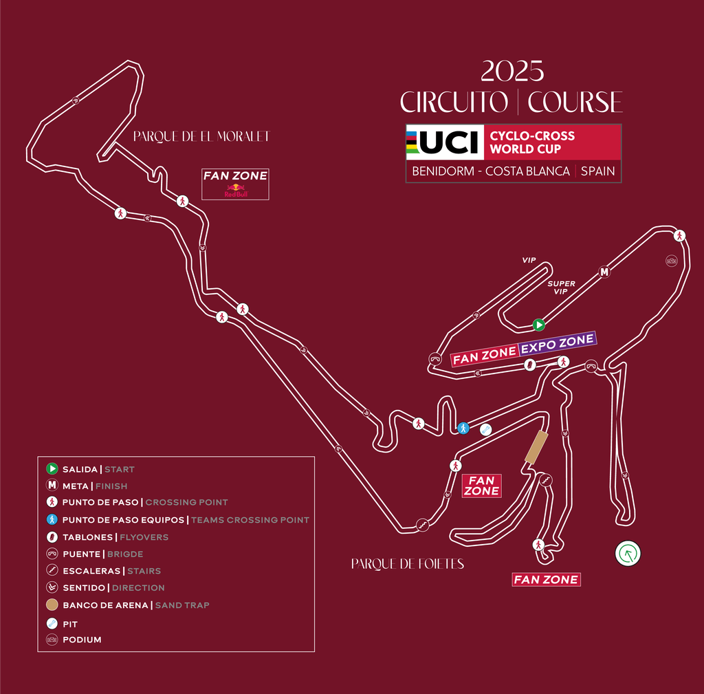 “El circuito cambia, como ya ocurrió en los dos años anteriores”, explica Pascual Momparler, máximo responsable de la Copa del Mundo de Ciclocross UCI – Benidorm Costa Blanca. “Hemos identificado qué le gusta al aficionado y también qué les gusta a los ciclistas. Éstos nos han pedido que el recorrido fuera un poco más duro, que era una característica que apreciaron en 2023, y que mantuviéramos la parte técnica que introdujimos en 2024. El resultado de escuchar a todo el mundo es un trazado tan técnico como exigente que creemos que será perfecto y esperamos utilizar durante muchos años”.