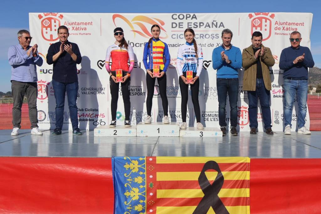 En la categoría Élite femenia, Sofía Rodríguez (Nesta) finalizó segunda en la general, por detrás de su compañera Lucía González. El triunfo en Xàtiva le ha dejado un buen sabor de boca. «La del sábado fue una carrera muy rápida como es de esperar siempre que se afronta dicho circuito. Siempre voy con especial ilusión ya que es la carrera de casa, donde compito con el calor de los familiares y amigos. Fue una carrera muy luchada junto a mi compañera de equipo Lucía, no pude lograr el maillot de líder, pero aún así estoy muy contenta de obtener esta victoria y con muchas ganas de afrontar en Navidad el bloque de pruebas de la Copa del Mundo En la general he terminado segunda por detrás de mi compañera Lucía». Hulst, Zonhoven, Gavere y Besançon son sus próximos objetivos.