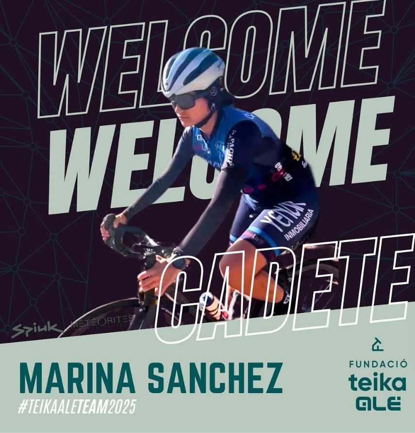 Marina Sánchez debutará como cadete la próxima campaña con el maillot Teika-Alé Team. El equipo valenciano de esa categoría estará formado en 2025 por Carla Martín, Carla Bañuls, Claudia Ortiz, Sara Calatrava y la citada Marina Sánchez.