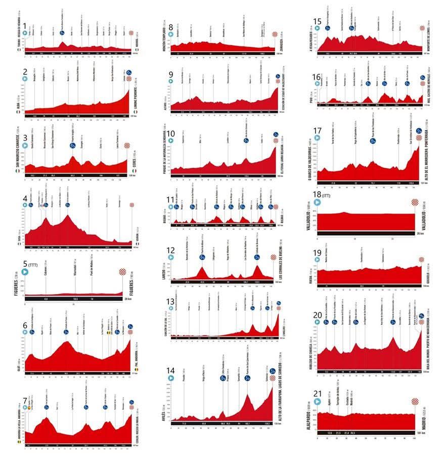 El primero de los diez finales en alto será inevitablemente inédito, ya que La Vuelta visitará Italia por primera vez. Las demás subidas, en cambio, son bien conocidas. Sin embargo, la carrera no ha regresado a Pal (Andorra) desde el triunfo de Igor Antón en 2010; a Cerler desde 2007, a pesar de ser uno de los finales en montaña más frecuentes de la historia (11 veces); a Valdezcaray desde que el australiano Simon Clarke, aún en activo, inició su conquista del Maillot de la Montaña en 2012; a Larra-Belagua desde que Remco Evenepoel se reivindicó tras perder terreno en el Tourmalet en 2023; y al Alto de el Morredero desde que Alejandro Valverde ganó allí en 2006.