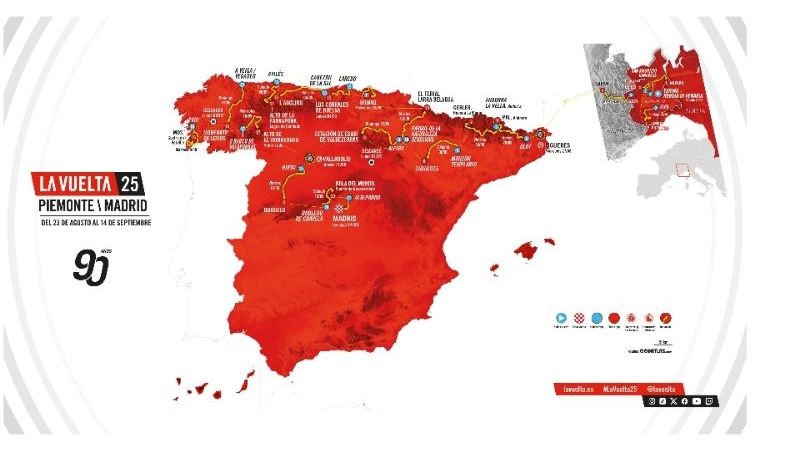 Además, el recorrido dará entre cuatro y seis oportunidades a los sprinters, incluyendo el que decidirá el primer portador de La Roja en Novara, ciudad natal del campeón mundial de 1982 Giuseppe Saronni. Dos serán las contrarrelojes en el menú de La Vuelta 25: una por equipos (20 km, etapa 5) alrededor de Figueres, marcando el comienzo de la carrera en suelo ibérico, y una individual (25 km, etapa 18) en Valladolid, muy similar a la que ganó Filippo Ganna en 2023, superando a Remco Evenepoel y Primoz Roglic.