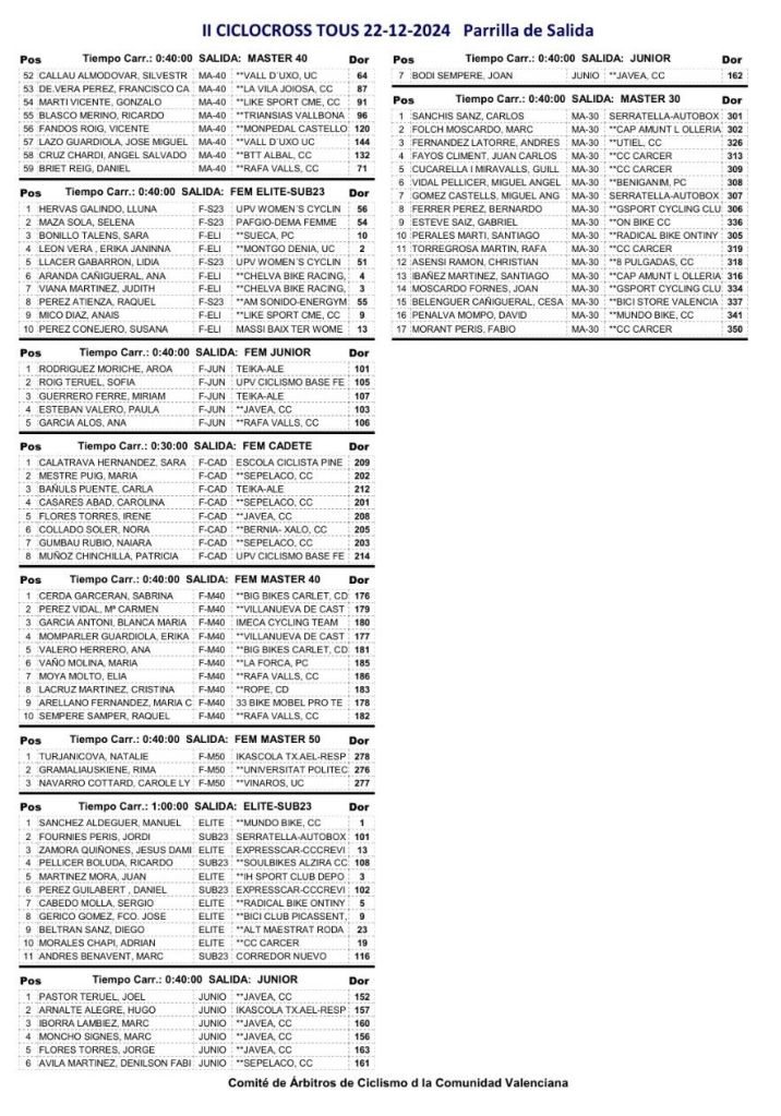 El Ciclocross de Tous afronta el domingo, 22 de diciembre, su segunda edición. La prueba, que dará comienzo a las 9 horas, es puntuable para la Challenge de la Comunidad Valenciana de CX que lideran Manuel Sánchez Aldeguer y Sara Bonillo.
