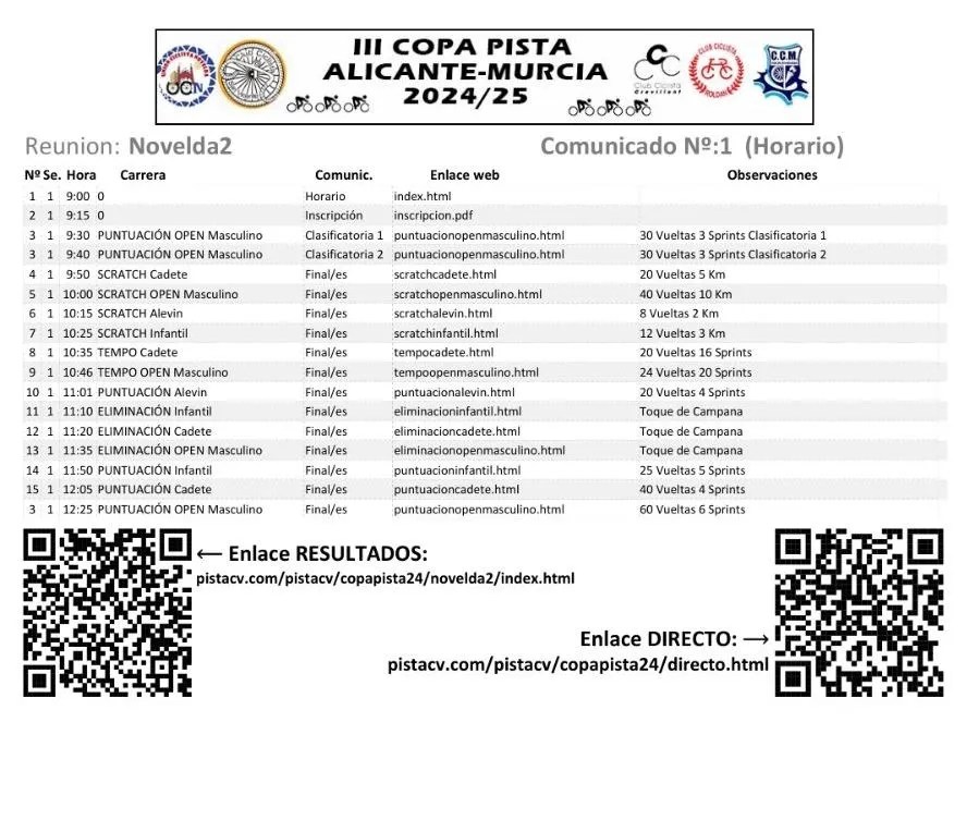 CALENDARIO 2024-2025 DE PISTA DE LA CV y COPA ALICANTE-MURCÍA. (General)