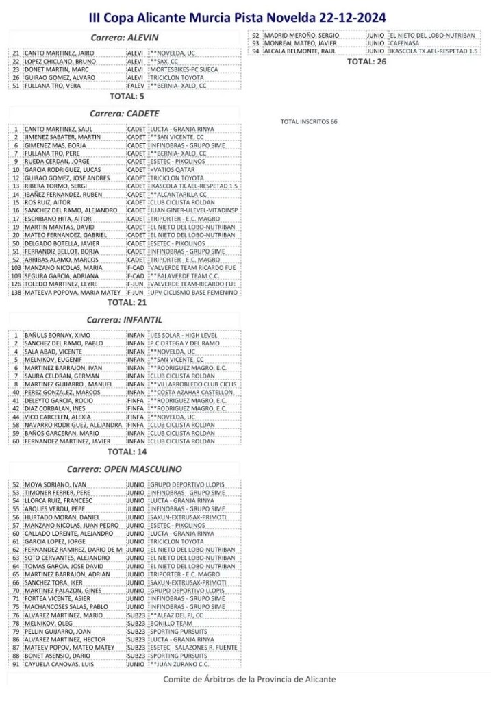 San Vicente ha acogido hoy una nueva prueba de la 𝗜𝗜𝗜 𝗖𝗼𝗽𝗮 𝗔𝗹𝗶𝗰𝗮𝗻𝘁𝗲/𝗠𝘂𝗿𝗰𝗶𝗮 𝗱𝗲 𝗣𝗶𝘀𝘁𝗮. El júnior Pere Timoner y el cadete Borja Giménez, ambos de Infinobras-Grupo SIME, han sido los protagonistas en el velódromo Manuel Guijarro.