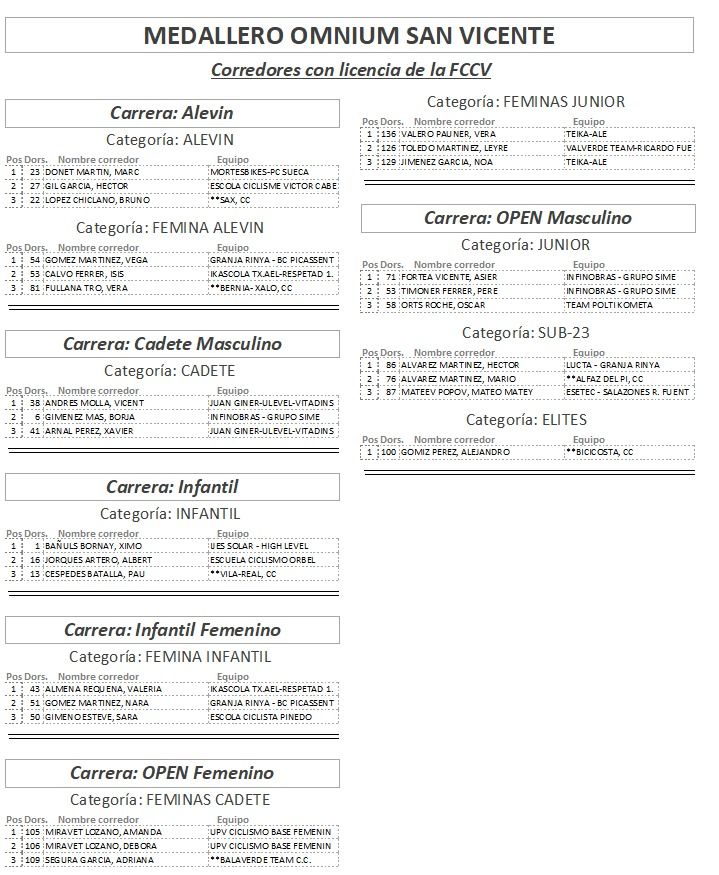 El Velódromo Manuel Guijarro de San Vicente del Raspeig ha vestido hoy a los campeones autonómicos de Ómnium. El sub23 Héctor Álvarez (Lucta-Granja Rinya), los juniors Asier Fortea (Infinobras-Grupo SIME) y Vera Valero (Teika-ALE) y los cadetes Vicent Andrés (Juanginer-Ulevel-Vitadinsport) y Amanda Miravet (UPV-Ciclismo base) se han proclamado campeones valencianos de ómnium.