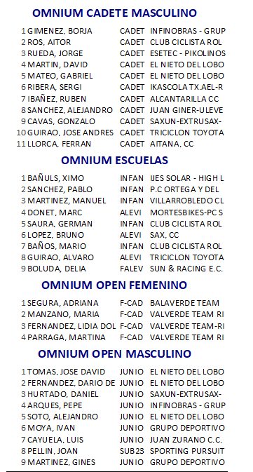 28 – San Vicent del Raspeig – Campeonato Autonómico Ómnium. Clasificaciones