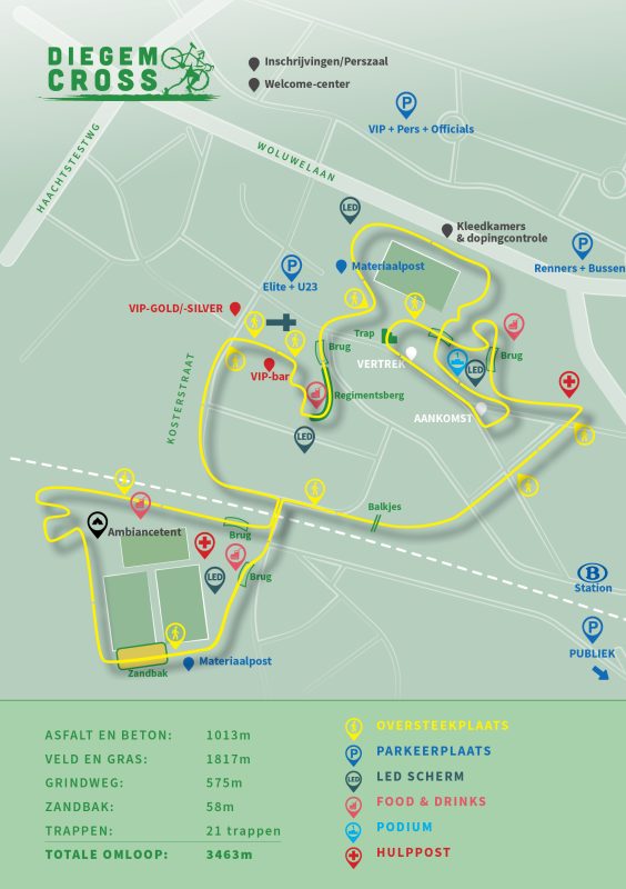 El recorrido de Diegem es prácticamente el mismo del año pasado. Es un circuito urbano, con escaleras y con mucho más asfalto del habitual en las carreras de ciclocross. Eurosport 1 dará en directo la prueba: las féminas correrán a las 18 horas y los hombres élite lo harán a las 20.30.