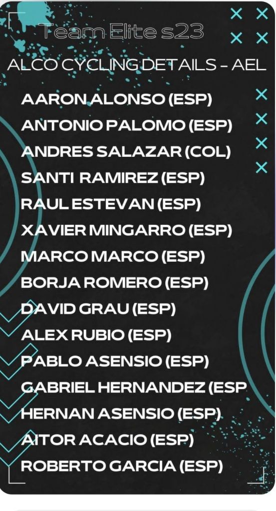El Alco Cycling Details – CC AEL Txirrindulari Taldea será el nuevo equipo de la Comunidad Valenciana de la categoría Sub 23 para 2025 creado bajo el auspicio Félix Rodríguez. En dicho conjunto tienen entrada corredores que han sido júnior con el AEl, como Andrés Salazar, Raúl Estevan o Xavier Mingarro que no han encontrado un hueco para comenzar su etapa de Sub 23. Además de estos ciclistas menciondos tienen asegurada su participación en dicho conjunto Antonio Palomo, Aarón Alonso, Santi Ramírez, Marco Marco, Borja Romero, David Grau, Álex Rubio, Pablo Asensio, Gabriel Hernández, Hernán Asensio, Aitor Acacio y Roberto García. Kike Sanchis, Salva y el mencionado Félix Rodríguez ejercerán de directores.