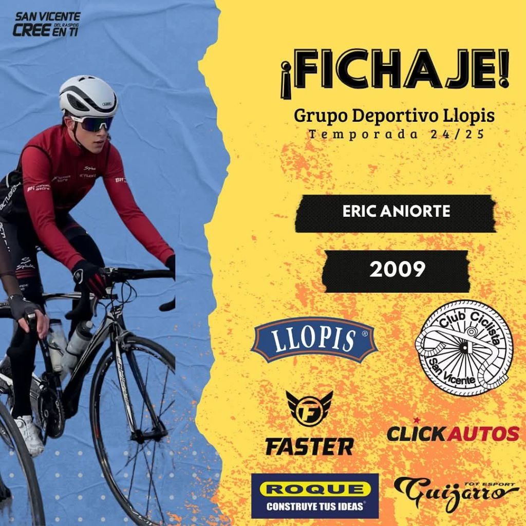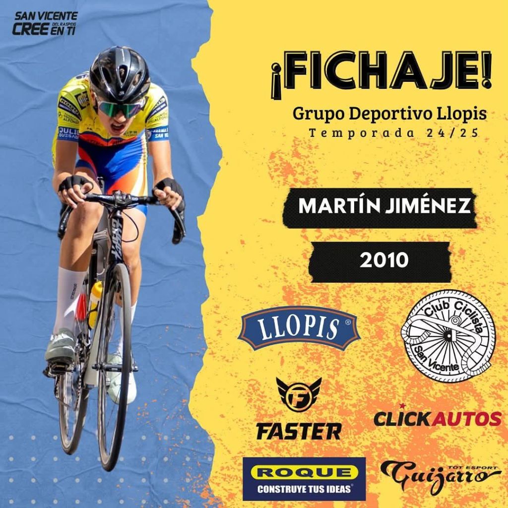 El equipo cadete del Club Ciclista San Vicente, el GD Llopis, estará formado en 2025 por doce corredores. Desde la escuela de la entidad han llegado Martín Jiménez, Pablo Aracil, Iago Blasco y Pau Pastor, preparados para aprender de su nueva etapa como cadetes. De la Escuela del CC Castalla refuerzan el equipo Pedro García y Mauro Pastor. Además, Enric Aniorte, que llega de Jijona, todavía no sabe lo que es competir. Desde Cuba llega Anthony Guerra y desde Argentina Santiago Fernández y Manuel Rivero. Además, han renovado Artuno Espinosa García de las Bayonas y el ucraniano Yaroslav Markelov.