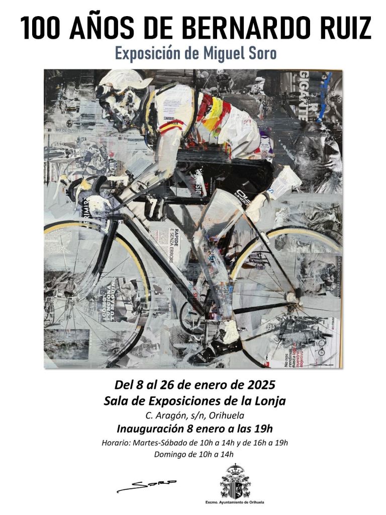 El exprofesional y pintor de Xàtiva, Miguel Soro, inaugura hoy 8 de enero en la Lonja de Orihuela una exposición sobre los 100 años de la vida del exciclista Bernardo Ruiz y ganador de etapa en las tres grandes vueltas. En 1952 fue el primer español en subir al podio de la «Grande Bouclé». Fue tercero tras Fausto Coppi y Stan Ockers. Un año antes había sido el primero en vencer en dos etapas en la prueba gala. También fue precursor en triunfos de etapas en el Giro. Se impuso en 1955 en una jornada que tuvo salida y meta en Roma. En su palmarés figura la Vuelta a España de 1948 y logró el título nacional en las ediciones de 1946, 1948 y 1951.
