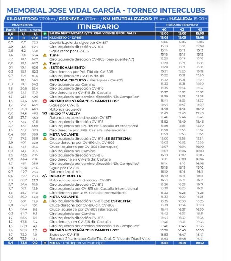 Etapa 4. Memorial José Vidal García. Castalla. 8 de febrero. 15h. 73km.