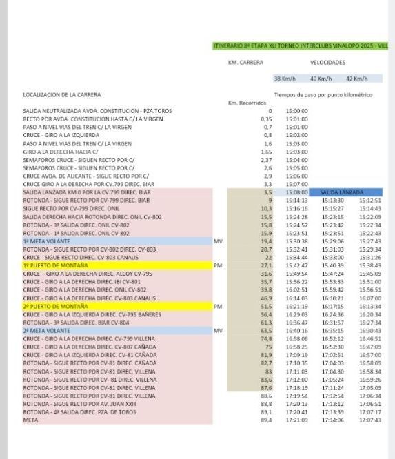 Etapa 7. Villena. 22 de marzo. 15h. 91km.