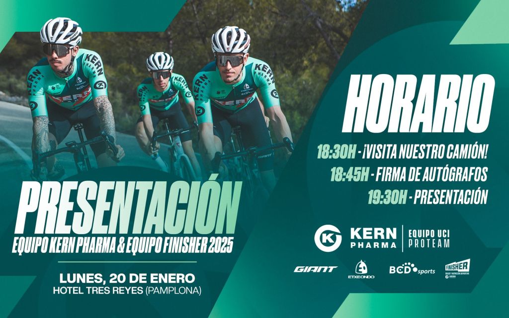 Impulsado por la fortaleza de su base, el Equipo Kern Pharma iniciará la temporada 2025 en un acto de presentación oficial especial y abierto al público en su casa, en Pamplona. La puesta de largo también incluirá al Equipo Finisher, filial del conjunto navarro y cantera de grandes deportistas, fundamento de la estructura ciclista.
