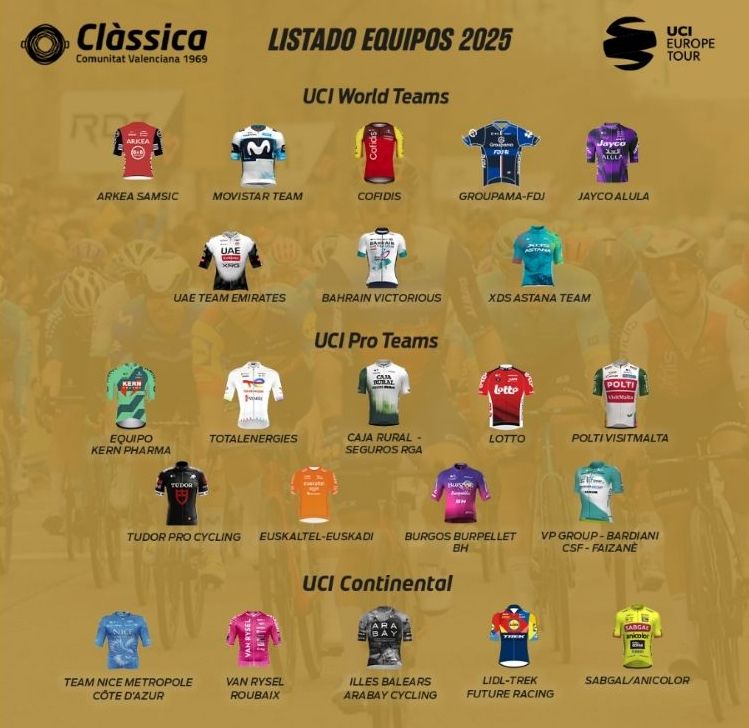Un total de 22 equipos formarán el pelotón de la Clàssica CV 1969, de ellos hasta 8 de categoría UCI World Team.