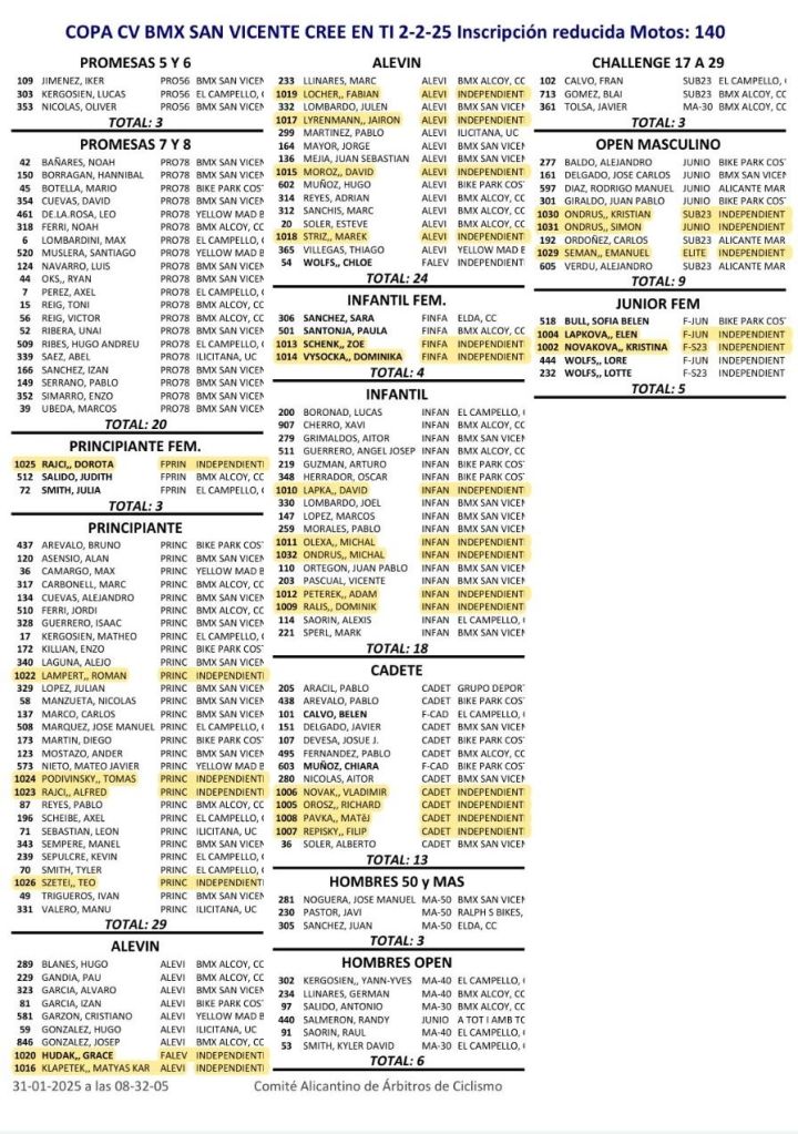 Calendario de la Copa BMX Comunitat Valenciana 2025