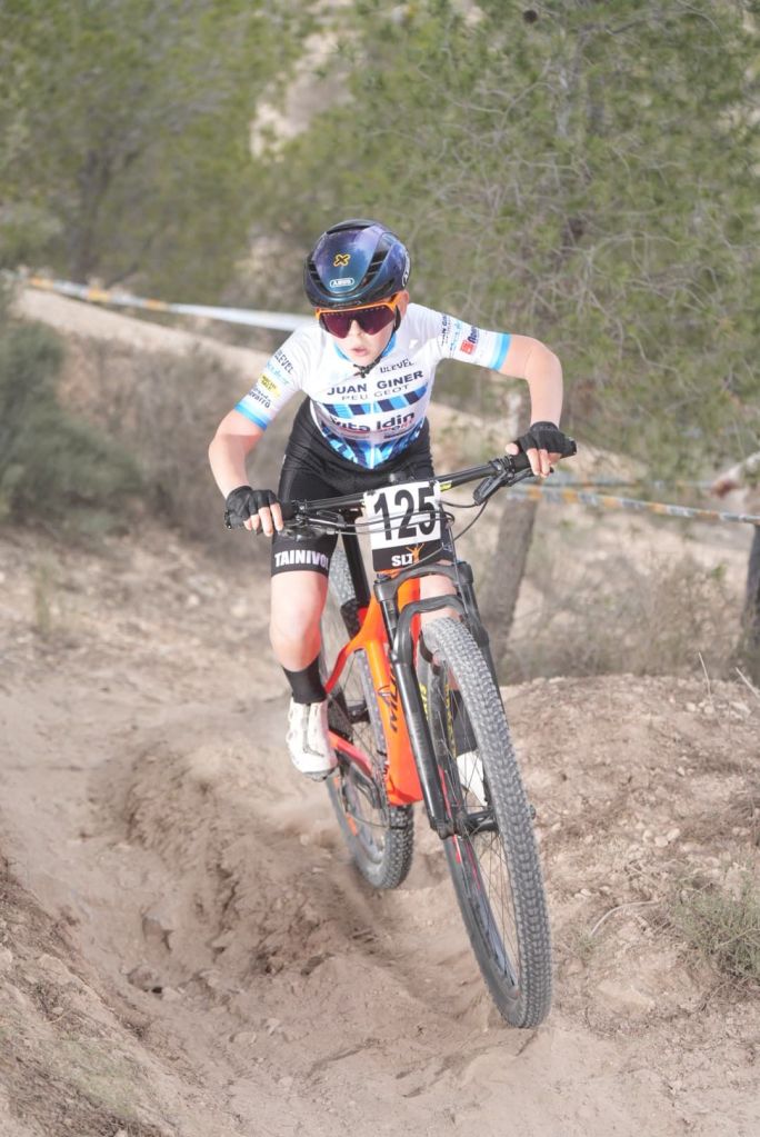 La Copa Alicantina de BTT de Escuelas de Ciclismo y Cadetes ha comenzado hoy en Elda con la disputa del Juguettos Cup. Xavi Vidal (Gobik Factory Team) y María Mestre (Sumistock) se han impuesto en Cadetes; Javier Delegido (Escuela Sabater) y Valeria Coloma (AM Sonido), en Infantiles 1; Oliver del Rey (Escuela Sabater) y Ainhoa Cano (AM Sonido), en Infantiles 2; Álex Moreno ( Escola Pinedo) y Enma Reyes (Crevillent), en Alevines 1; Álex Alejandro Arqués ( Escuela Yecla) y Vega Morales (AM Sonido), en Alevines 2; Rubén Ortega (Triciclón) e Iria Baquero (La Vila), en Principiantes 1; Iván Cortés (Crevillent) y Valeria Vidal (Aitana), en Principiantes 2; Gabriel Marín (Cieza) y Anabel Palao (Escuela Yecla), en Promesas 1;y David Chenoll ( Big Bikes) y Cristina Iñesta (Crevillent), en Promesas 2;