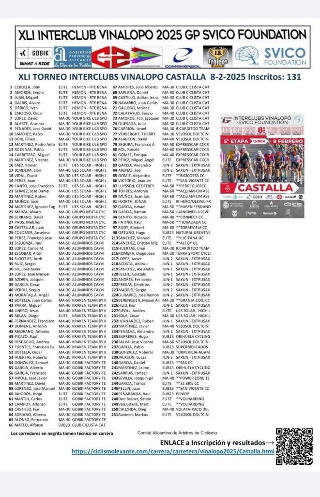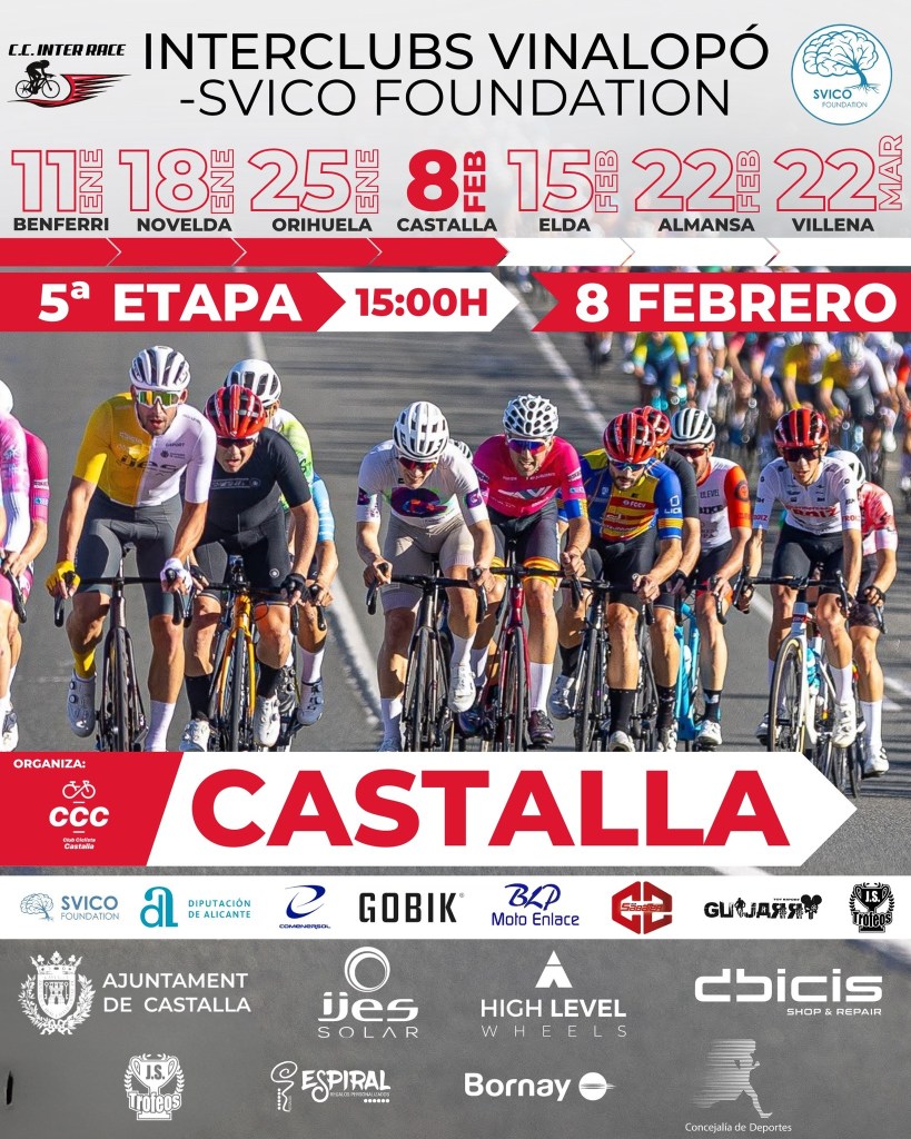 Este sábado, 8 de febrero, el Interclubs Vinalopó-Svico Foundation llega a Castalla. El trazado del denominado Memorial José Vidal García cuenta con 73 kilómetros de recorrido. La salida está prevista a las 15 horas.