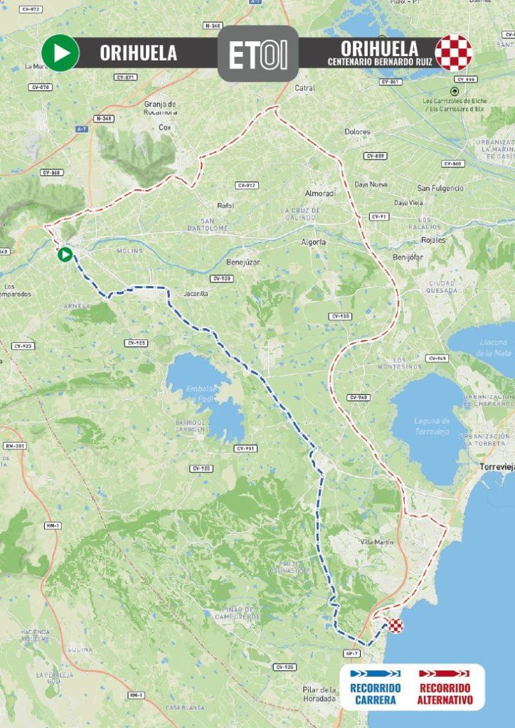 1ª: Miércoles 5 febrero. Orihuela (14:41)-Orihuela (16:45) (Alicante), 34,4 kms contrarreloj equipos
