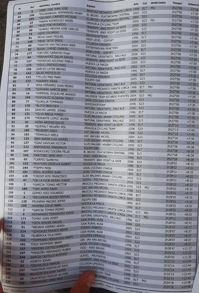 Juan Pedro Lozano (Filial Caja Rural) lidera el premio de la Montaña; Antonio Fuentes (Valverde), las Metas Volantes; y David Hernández (Brócoli), los Sprint Especiales. La general de los puntos la encabeza Pablo Ortega y Geeerlings es el primer murciano.