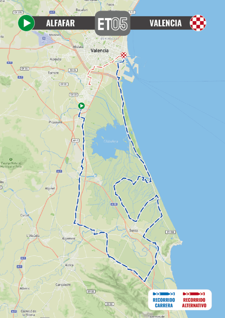 Etapa Femenina. 09/02/2025. Alfafar-Valencia, 104 kilómetros. Rutómetro.
