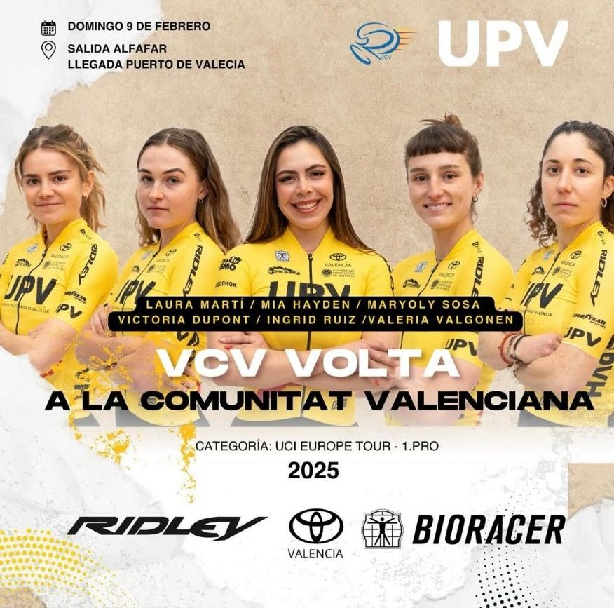 Entre los equipos participantes destacar la presencia del UPV Women’s Cycling Team dispuesto a ser profeta en su tierra. Tomarán la salida con el maillot universitario Laura Martí, Mia Hayden, Maryoly Sosa, Victoria Dupont, Ingrid Ruiz y Valeria Valgonen.