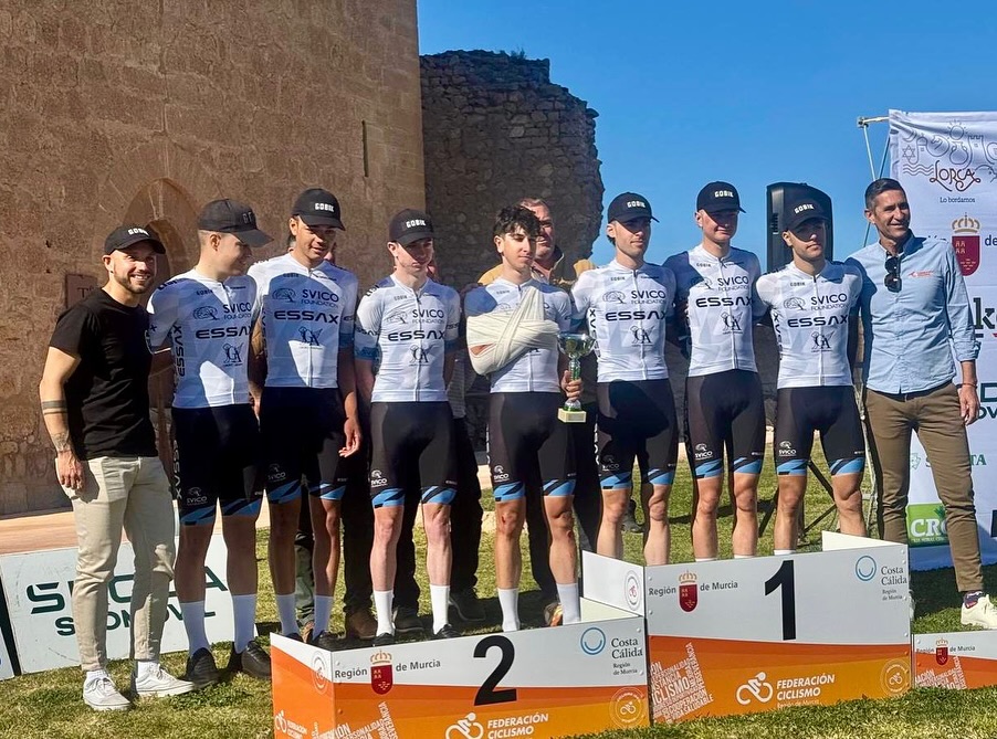 El balance del Essax Svico Foundation en la Vuelta Ciclista al Guadalentín ha sido muy positivo. En la primera prueba por etapas de la temporada la escuadra de Juan Miguel Pérez ha subido al podio para recoger el premio al MEJOR EQUIPO de la ronda. La escuadra sajeña estuvo formada en tierras murcianas por Mikel Castellá, Iván Palomeque, Diego Martínez, Diego Aparicio, Mika Vijfvinkel, Deetray Jarret y Jessi Maris. Además, Iván Palomeque (Benidorm, 27 de marzo de 2002) acaba tercero en la general. «Veníamos con intención de pelear por etapas y la general y se ha estado ahí en la pomada», reconoce Palomeque. A su juicio «en la etapa inicial faltó muy poco, el equipo trabajó de diez, pero un error por mi parte en el sprint me hizo perderla. La segunda plaza me supo a poco».