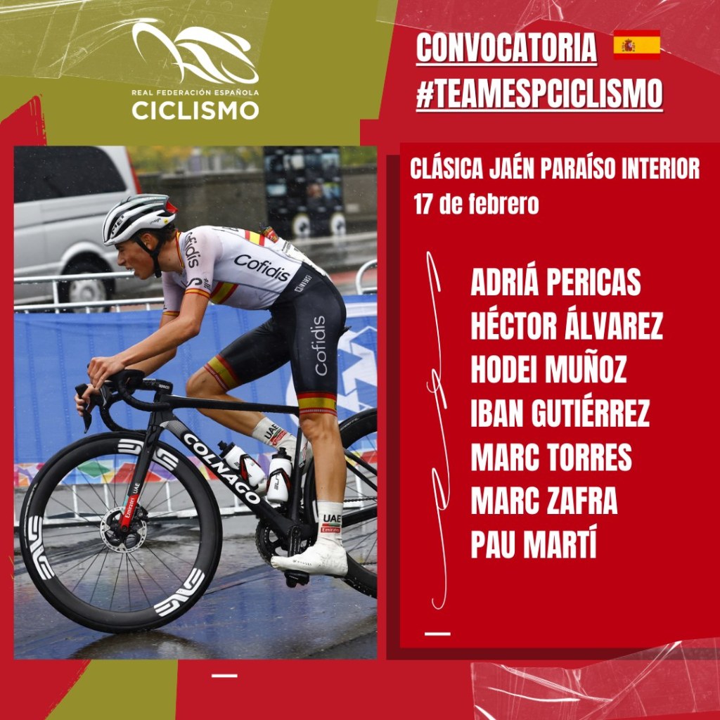 De cara a la Clásica Jaén Paraiso Interior, Pascual Orengo dará entrada en la alineación de la Selección Española sub23 a Iban Gutiérrez, Hodei Muñoz, Marc Torres y Marc Zafra, mientras que Adriá Pericas, Héctor Álvarez y Pau Martí repetirán con respecto a la Vuelta a Murcia.