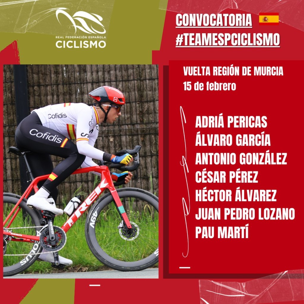 El técnico valenciano contará en la Vuelta a Murcia con un bloque integrado por Adriá Pericas, Álvaro García, Antonio González, César Pérez, Héctor Álvarez, Juan Pedro Lozano y Pau Martí. Un equipo muy competitivo que disfrutará de la presencia de uno de los ciclistas más destacados del campo sub23 internacional el pasado año como Pau Martí, 3º en el Giro d’Italia NextGen del pasado año, así como de dos de las grandes promesas del ciclismo nacional como Adriá Pericas y Héctor Álvarez, que vienen de ser dos de los mejores juniors a nivel internacional del 2024. En el caso del benidormense, acaba de recuperarse de una fractura de clavícula.