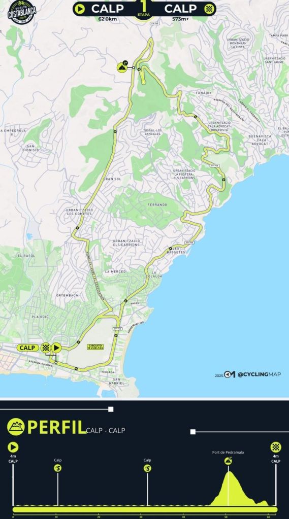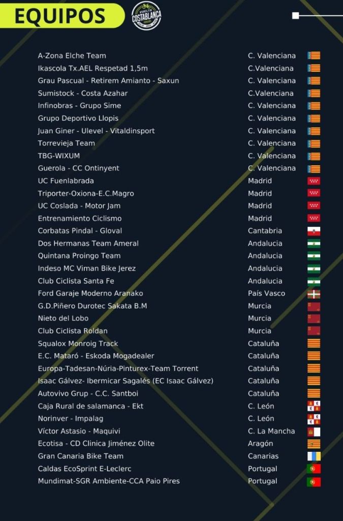 Calpe, Xàbia y Altea serán los pueblos en donde los días 7, 8 y 9 de marzo se celebrará la I Vuelta Ciclista Costa Blanca, en categoría cadete, con la participación de más de 200 corredores pertenecientes a 36 equipos de España y Portugal (diez de la Comunitat Valenciana, cuatro de Andalucía, uno de Aragón, uno de Canarias, uno de Cantabria, uno de Castilla-La Mancha, tres de Castilla-León, cinco de Cataluña, cuatro de Madrid, tres de Murcia, uno del País Vasco y dos de Portugal).