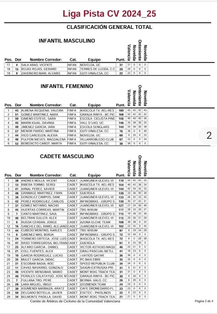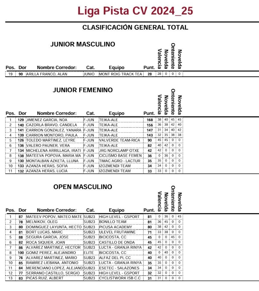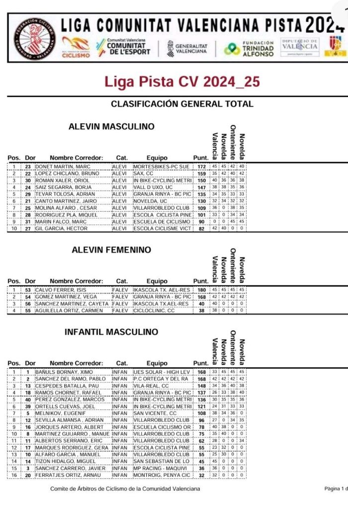 14- Novelda (Liga Pista FCCV). Clasificaciones