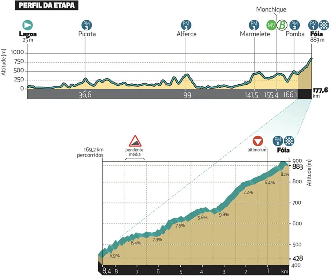 2ª: Jueves 20 febrero. Lagoa (13:10)-Fóia (17:45), 177,6 km