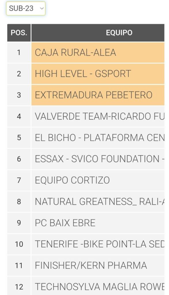 Por escuadras, el Essax-SVICO Foundation-Grupo Arfran domina en la categoría élite y el Filial Caja Rural-Alea, en Sub 23.