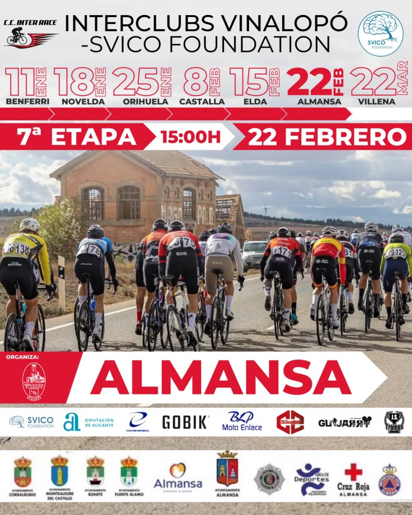 Almansa espera una nueva jornada del Interclubs Vinalopó-Svico Foundatio. Con los ecos ofrecidos por el pelotón en Elda en la última jornada, que terminó con un cambio de líder, tras un vuelco espectacular, se afronta el sábado, día 22 de febrero, una nueva competición que dará comienzo a las 15 horas y contará con 90 kilómetros de recorrido. Se aventura una etapa en la que el «más madera» de Groucho en la escena mítica del tren de la película Los hermanos Marx en el Oeste va a ser la bandera que va a ondear desde el banderazo inicial. Los antecedentes así lo corroboran.