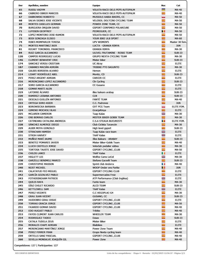 Etapa 3. Parcent. 2 de febrero. 72.4km. Clasificaciones.