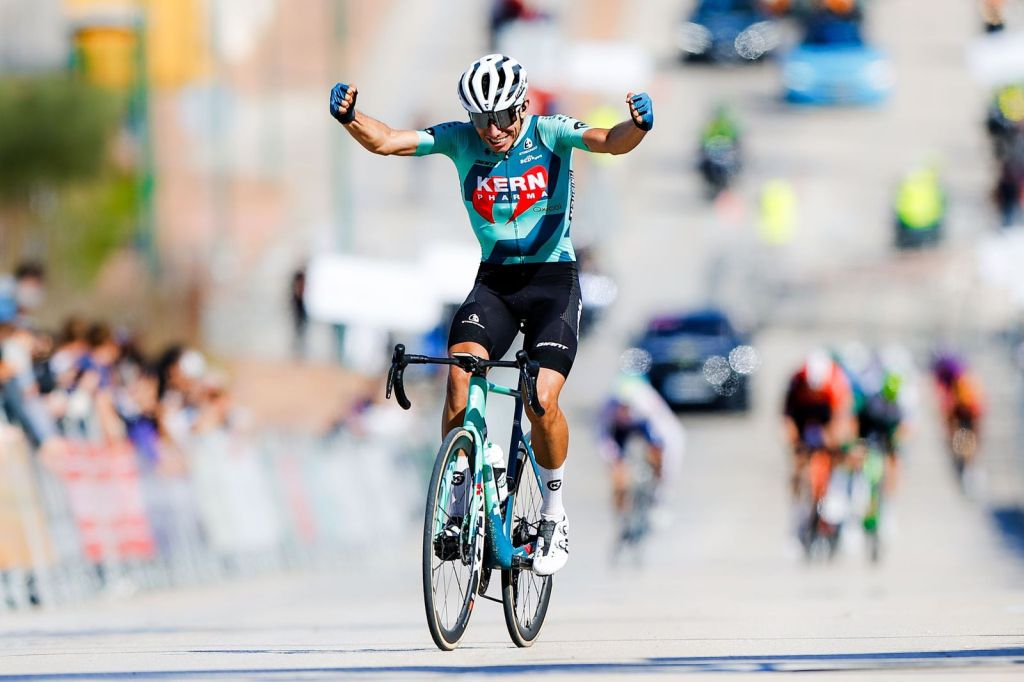 Premio a la insistencia. El Equipo Kern Pharma sumó este sábado su segunda victoria de la temporada con Diego Uriarte en la penúltima etapa de la Vuelta a Andalucía. El navarro realizó su apuesta a dos kilómetros de meta para sorprender al resto de fugados y apuntarse su primera victoria como corredor profesional en Alhaurín de la Torre.