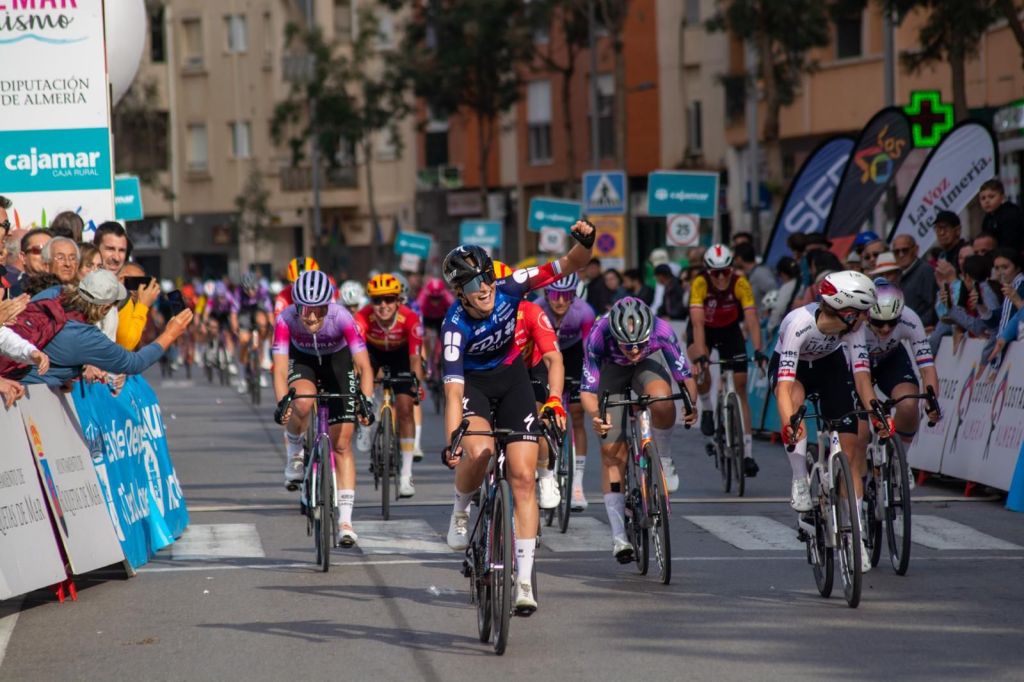 Ally Wollaston (FDJ-SUEZ) se adjudica la Clásica Almeria WE al imponerse al esprint a Linda Zanetti (Uno-X Mobility), segunda clasificada, y Dominika Wlodarczyk (UAE Team ADQ), tercera.