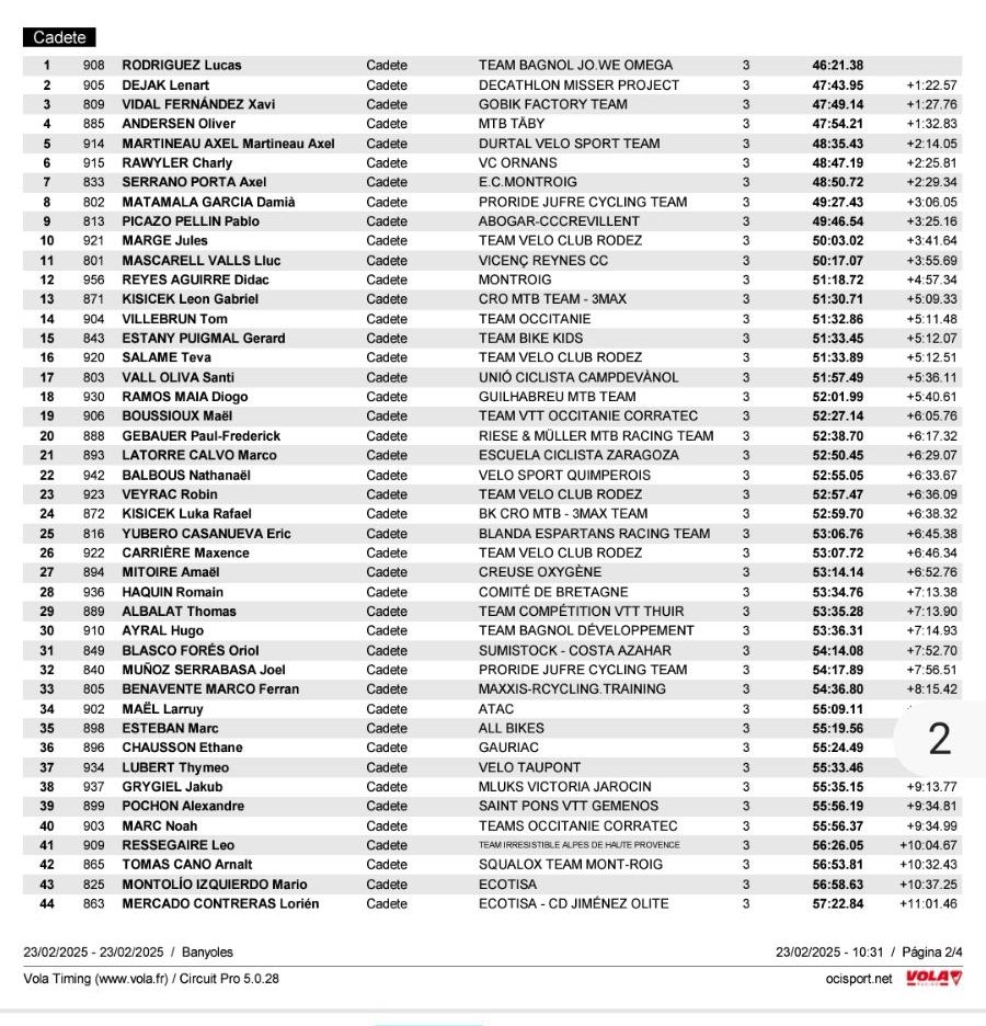 En la categoría cadete, Xavi Vidal volvió a subir al podio, en esta ocasión como tercero. El vilero plantó cara a los mejores corredores del mundo. Además, Pablo Picazo (Abogar-Crevillent) finalizó noveno.