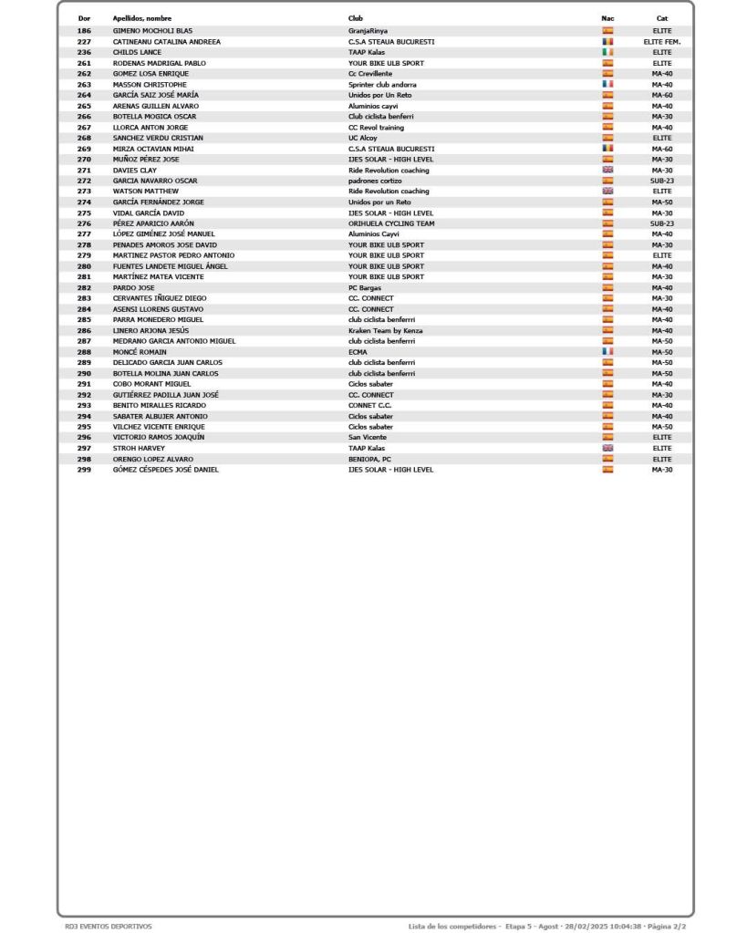 Etapa 3. Parcent. 2 de febrero. 72.4km. Clasificaciones.