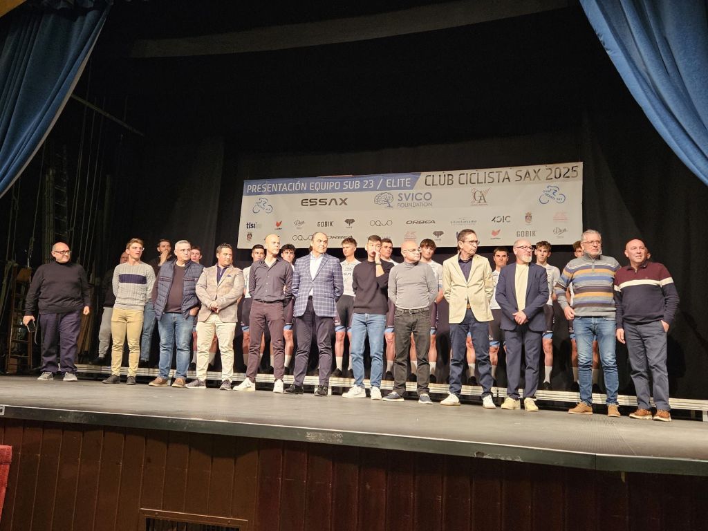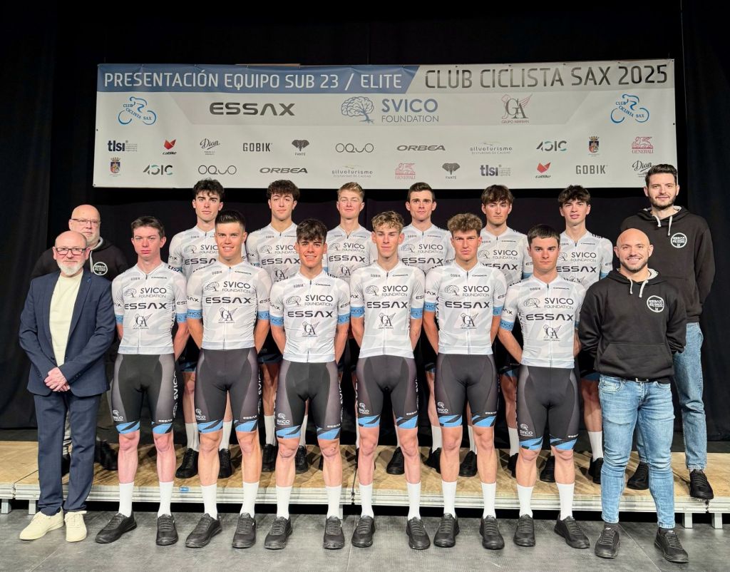 El equipo Essax-SVICO Foundation-Grupo Arrfran ha presentado hoy en Sax, en el Teatro Cervantes, su proyecto para una ilusionante temporada 2025 dentro de las categorías Élite y Sub23. La escuadra, que dirige Juan Miguel Pérez, cuenta con corredores de mucho nivel capaces de luchar en todos los frentes, tanto en carreras de un día como las de la Copa de España, como en las Vueltas.