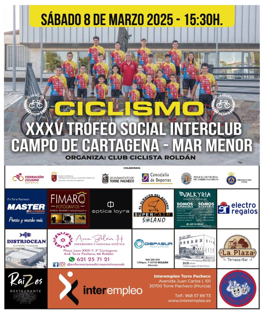 El sábado, 8 de marzo, se disputa en Roldán una nueva jornada del Interclub Campo de Cartagena-Mar Menor. Serán 79,5 kilómetros de recorrido. La prueba comenzará a las 15.30 horas.