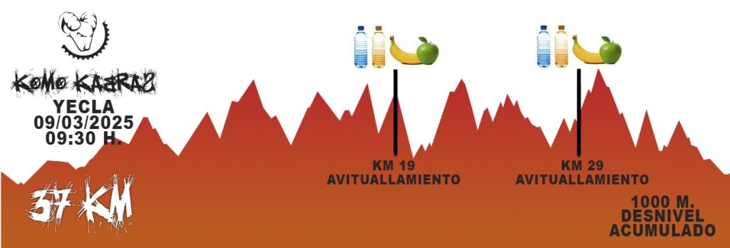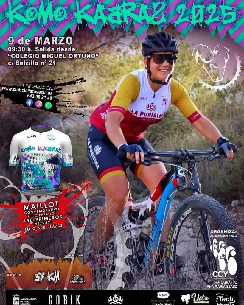 Yecla acoge el domingo, día 9 de marzo, la «Komo Kabras 2025». La prueba consta de 37 kilómetros, 1.000 metros de desnivel. La salida neutralizada será a las 9:30 h. junto al Colegio Miguel Ortuño. La prueba incluye 2 avituallamientos sólido-líquido, en los kilómetros 19 y 29.