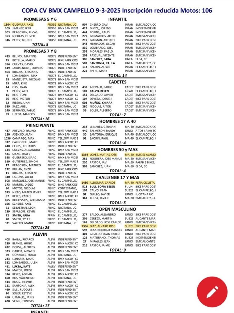 Calendario de la Copa BMX Comunitat Valenciana 2025- General
