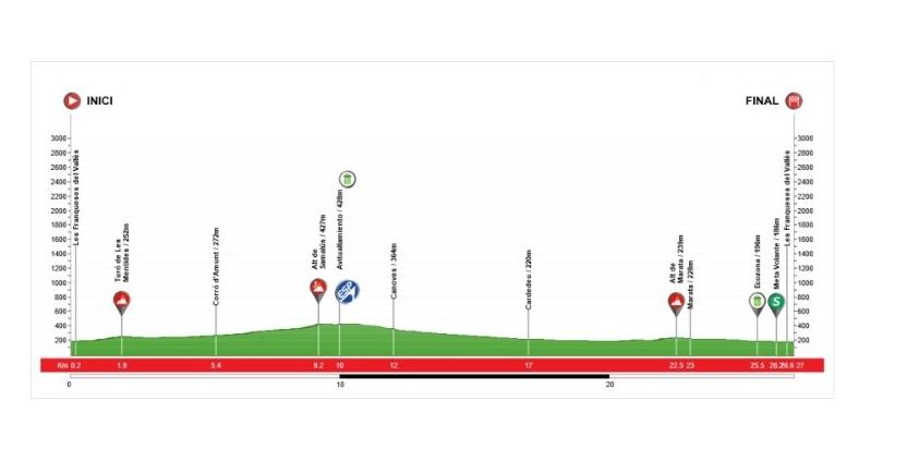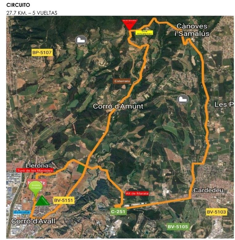 El recorrido de la prueba incluye dar cinco vueltas a un circuito de 27,7 km, que atraviesa diferentes núcleos del municipio y localidades vecinas como Cànoves y Cardedeu., y la salida y la llegada estarán situadas en el Paseo de la Carretera de Ribes de les Franqueses.